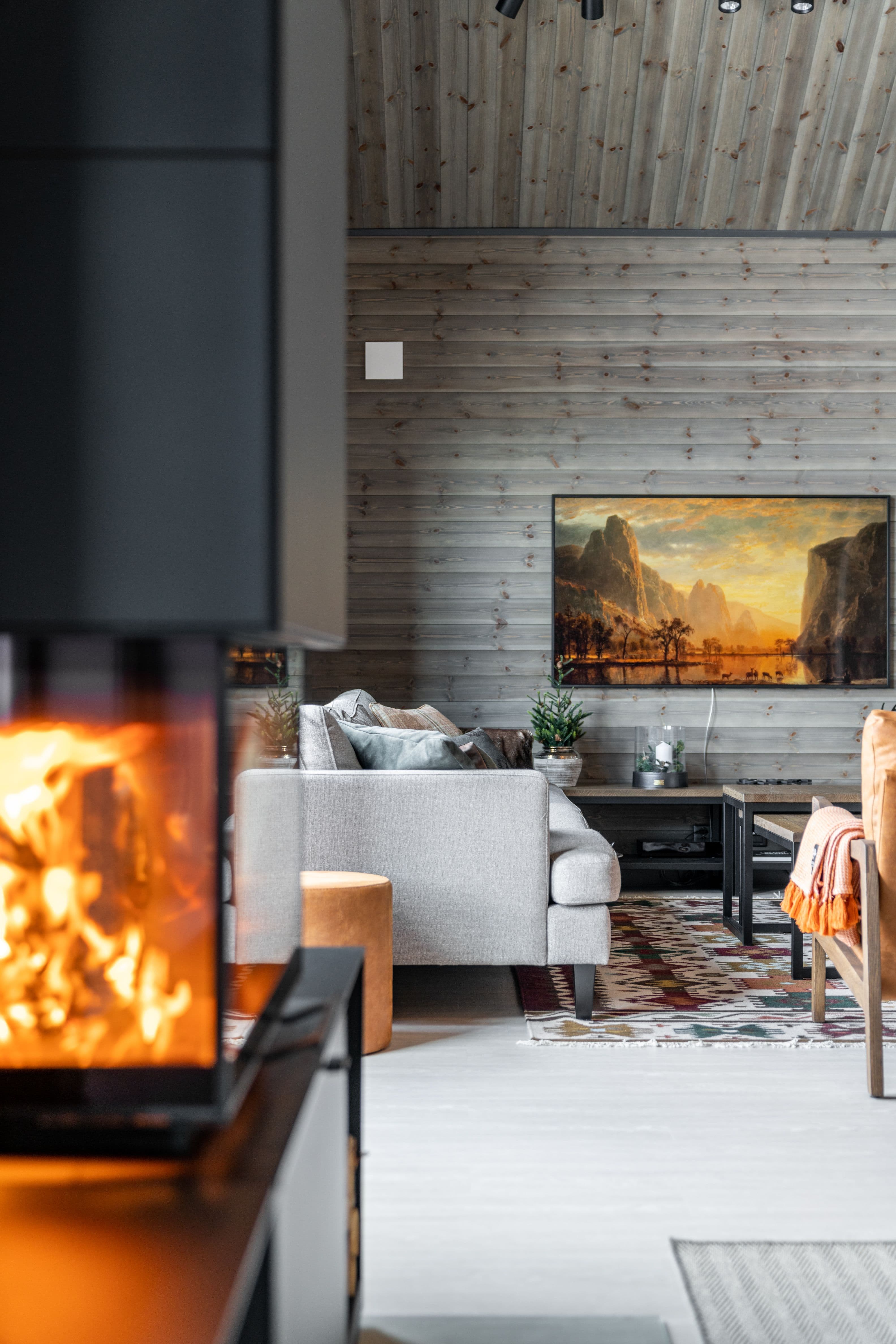 Frida berättar att hon sökte efter ”vinterstugmys-känslan” och valde en lite mörkare panel för att kunna jobba med belysning för att få till den där mysiga känslan. ”Panelen har ett liv i sig som är så otroligt fint och ser olika ut i olika ljus”, berättar Frida.