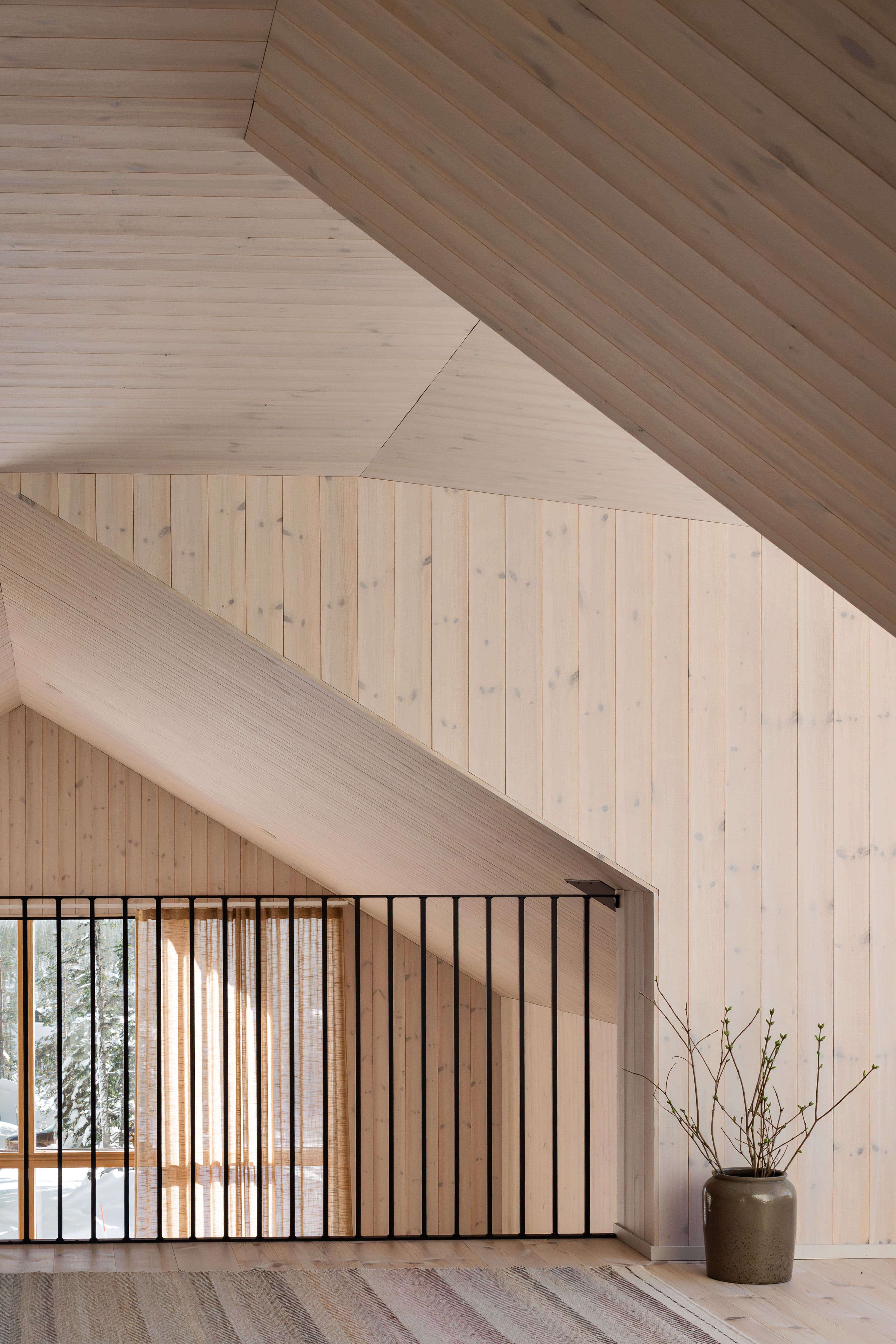 Carin och Mathias hade under lång tid följt Norrlands trä och inspirerats av hur panel används i olika miljöer. De uppskattade särskilt hur träpanel kan löpa från golv till tak och skapa arkitektonisk tydlighet.