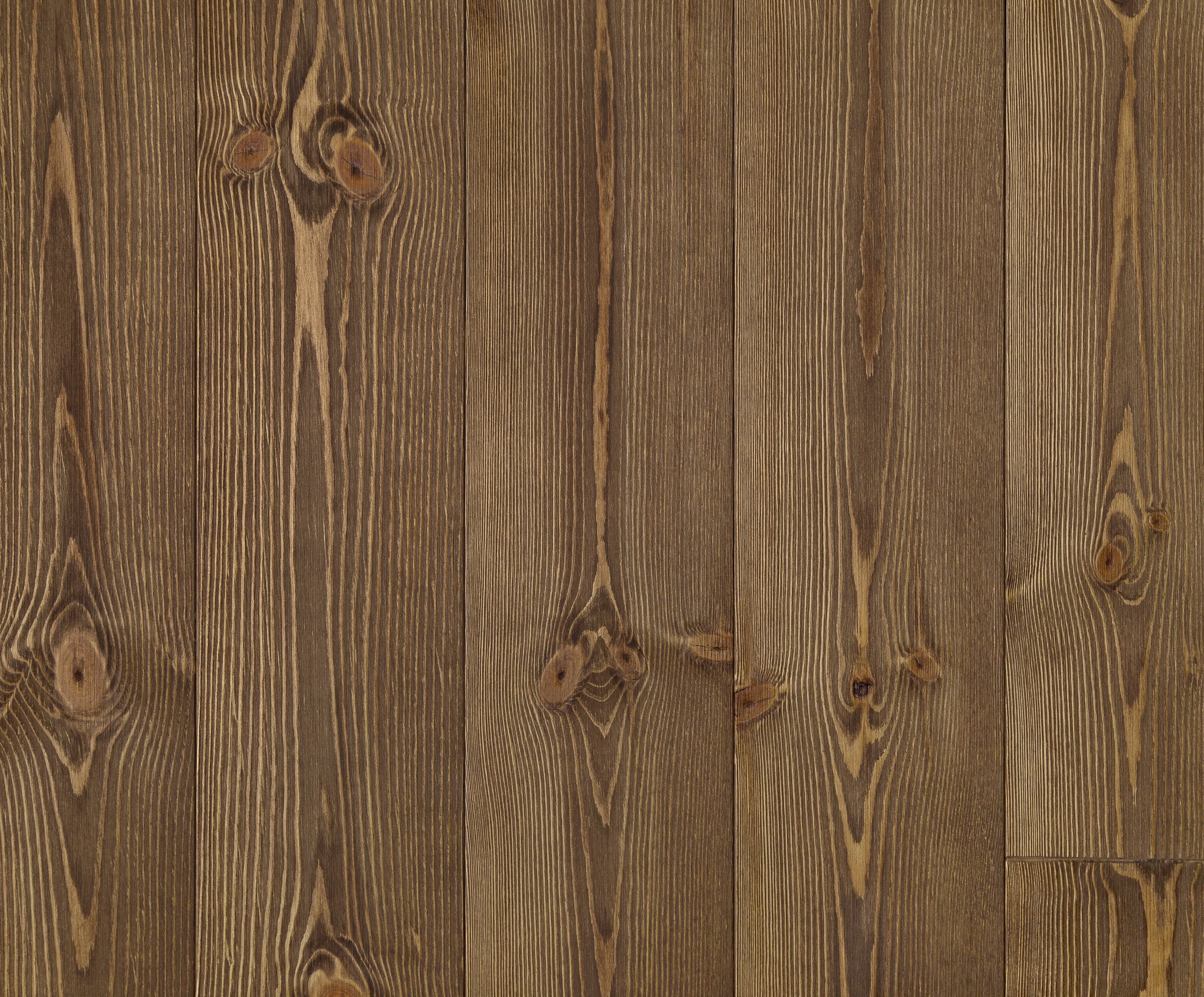 Borstat furugolv med brun hårdvaxolja kombinerar värme och elegans med tydlig trästruktur.