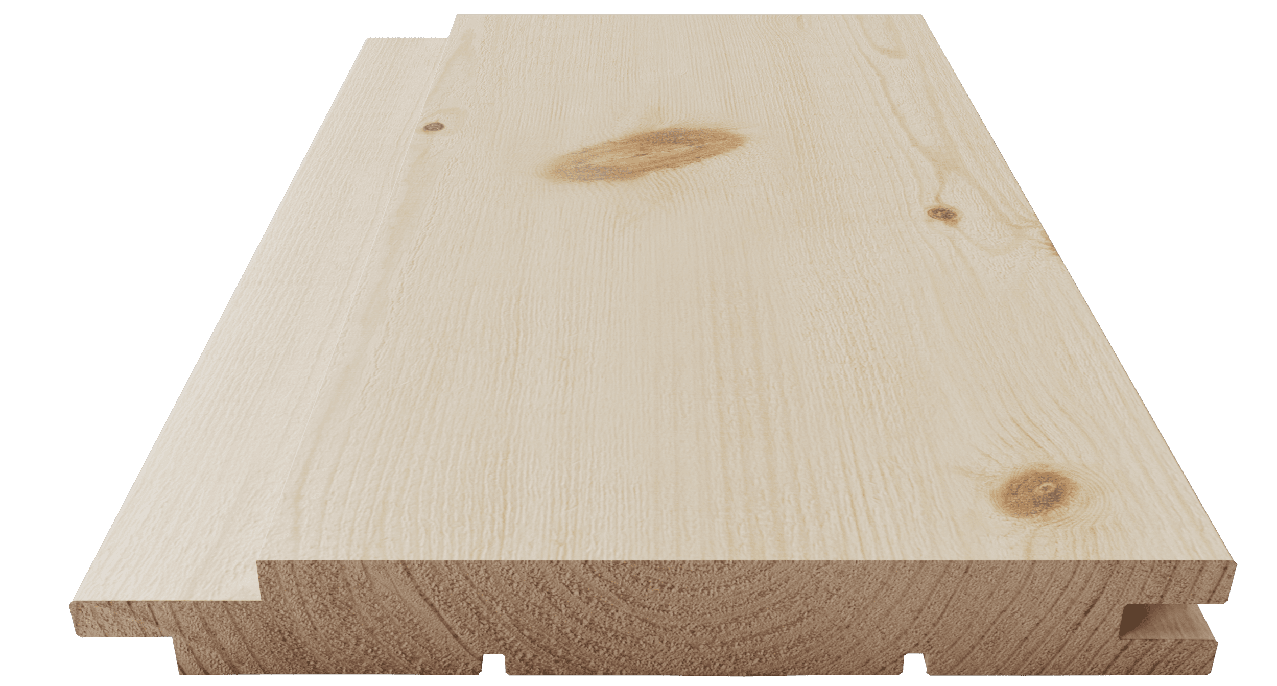 Denna spårpanel är finsågad och ytbehandlad i kulör S0502-Y, vilket ger en mjukt vit finish som ger rummet ett fräscht och ljust uttryck. Panelen har måtten 15 × 120 mm — idealiskt för väggar eller tak där man önskar ett luftigt intryck — och har en fuktkvot på ungefär 8 %, vilket tillsammans med tjockleken på brädan ger en stabil träpanel. Eftersom panelerna levereras färdigmålade behöver du ingen sista ytbehandling.