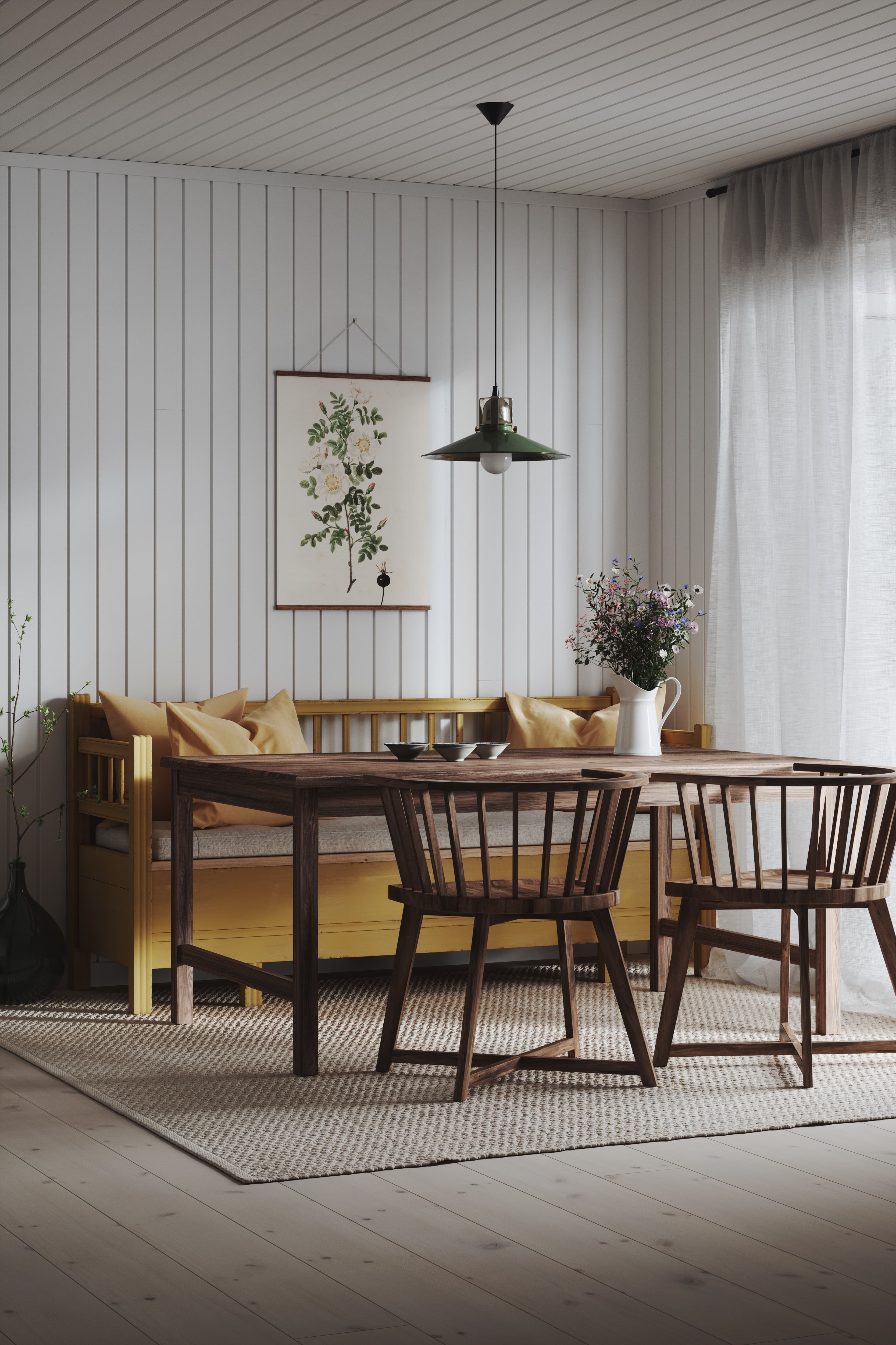 Denna putsade pärlspont har en slät yta och målas i kulören S3005-G50Y, en grågrön ton som skapar ett lugnt och tidlöst intryck. Panelens mått 15 × 95 mm gör den väl lämpad för väggar och tak. Fuktkvoten på cirka 8 % ger god stabilitet. Eftersom panelen levereras färdigmålad behövs ingen efterbehandling – den kan monteras direkt för ett klassiskt och mjukt uttryck.