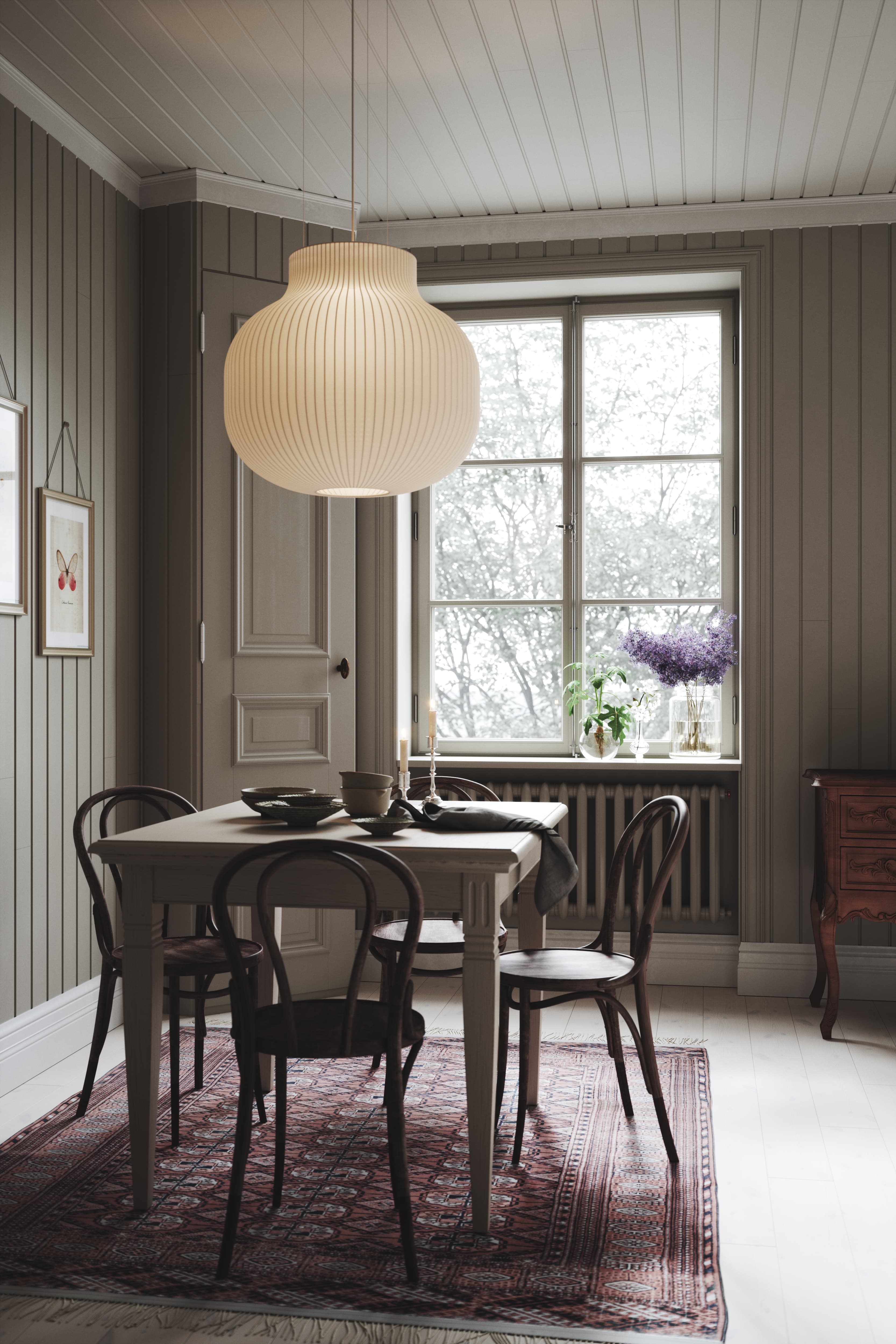 Putsad pärlspont målad grågrön ger ett harmoniskt uttryck med klassisk profil.