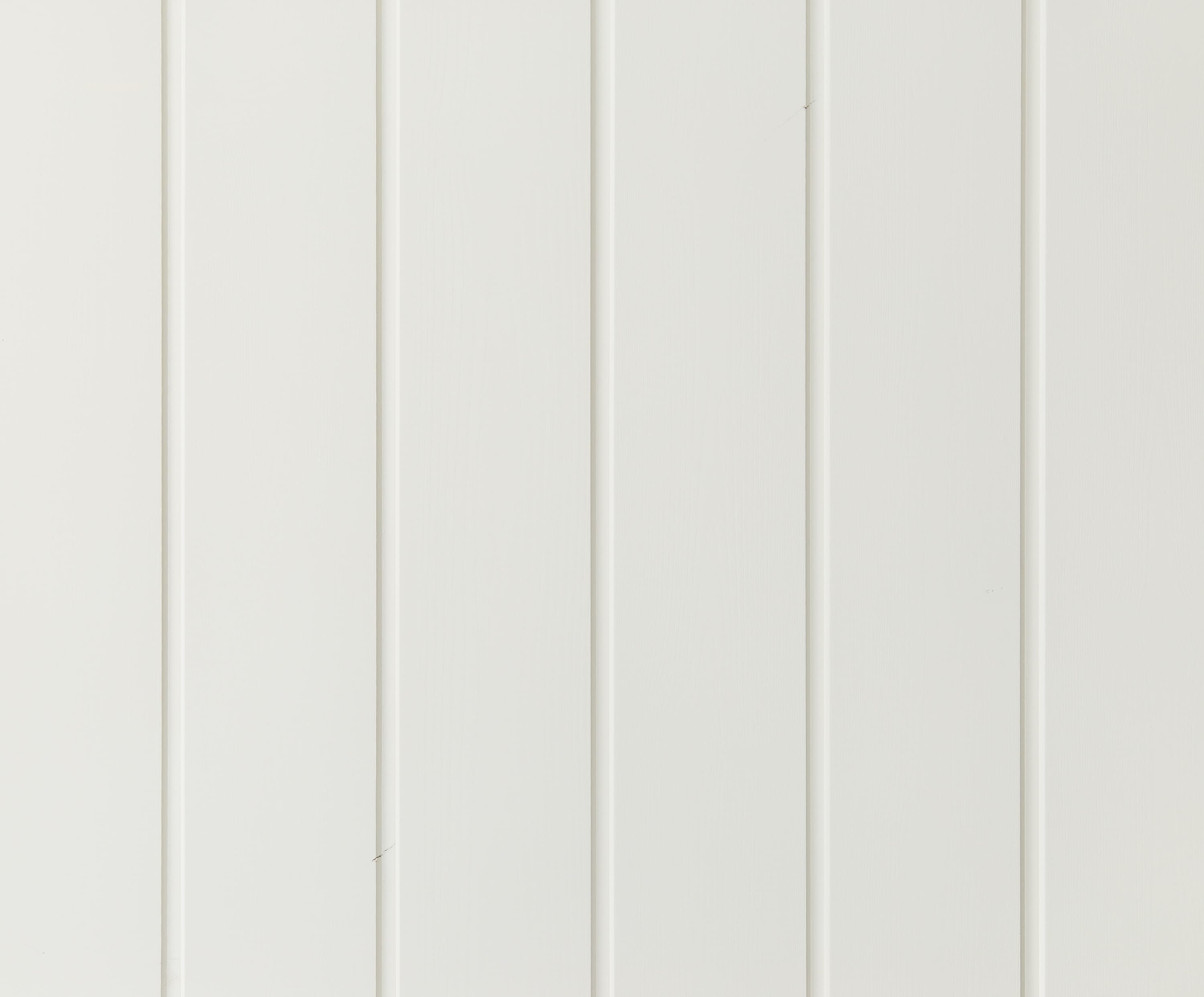 Putsad spårpanel 4019 målad vit (S0502-Y) ger en varmvit och elegant vägg- eller takyta med tydlig linjestruktur.